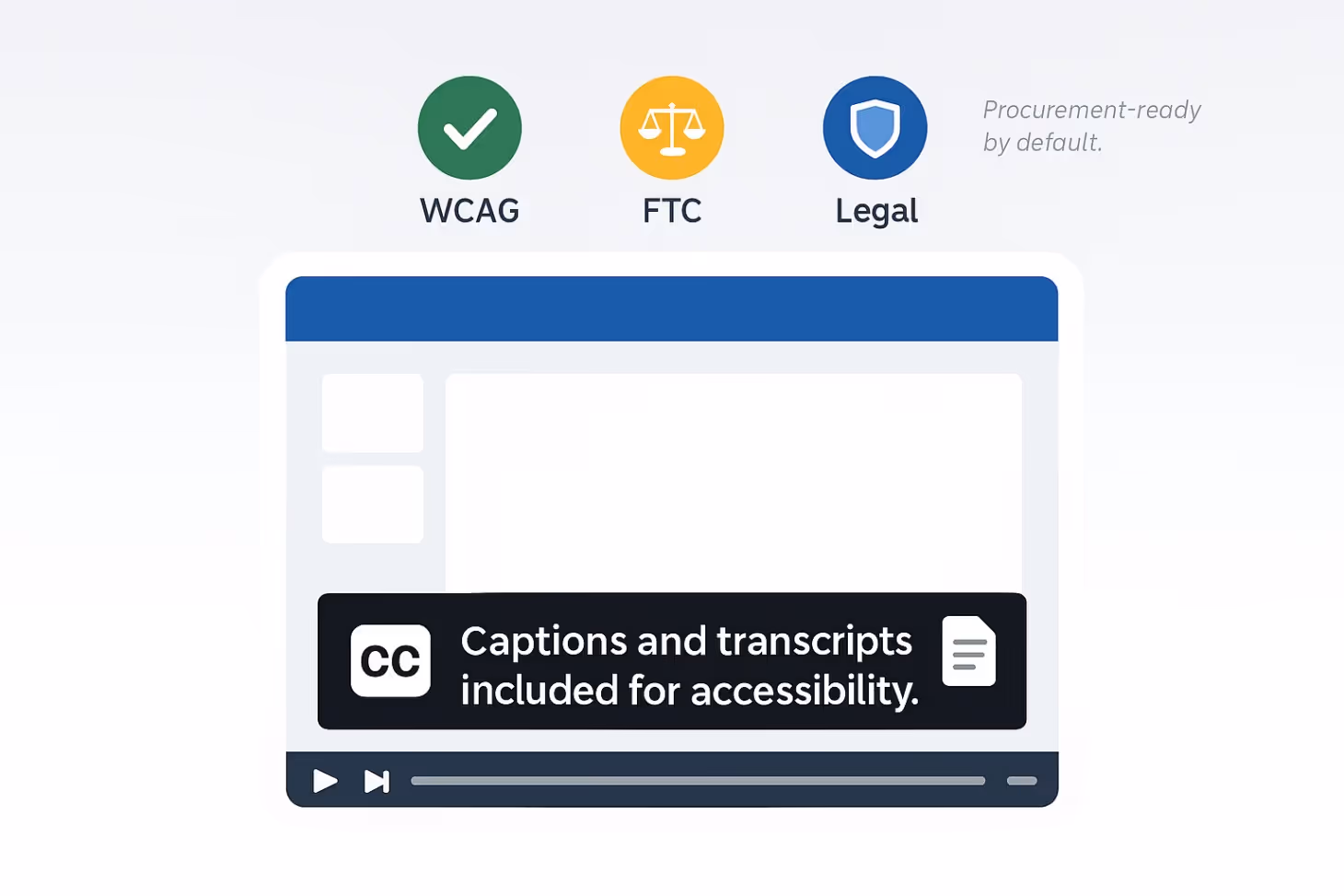 Procurement will ask for artefacts. Save time by building them as part of the process. Include captions as an SRT file and a full transcript so your content is usable in silent-autoplay feeds and accessible to all viewers. LinkedIn videos typically play muted, and the platform allows SRT uploads, so adding captions is not optional if you expect engagement.