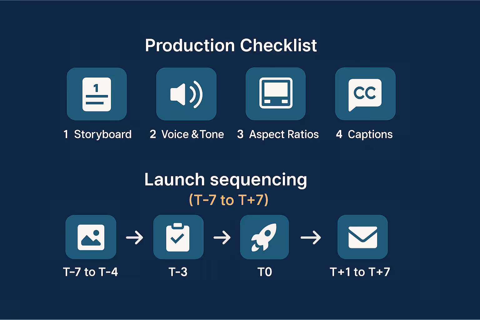 A great animated explainer for launch week is focused, accessible, discoverable and fully wired into your go-to-market stack. It earns the first click on social, explains clearly on your homepage, and hands off to an action that moves the buyer forward. Start with the one-sentence promise, plan formats and channels up front, and hold your team to accessibility, legal and SEO standards from the first draft.
